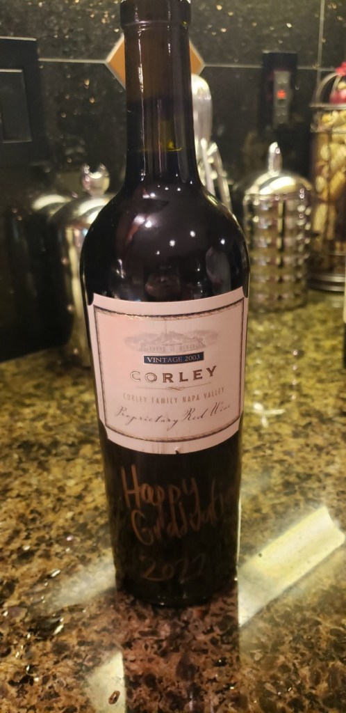 ๐ When Alec graduated from high school, we gave a gift of his birthyear vintage wine, a CORLEY Proprietary Red Wine from 2003, a nice vintage.